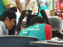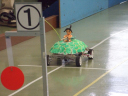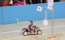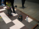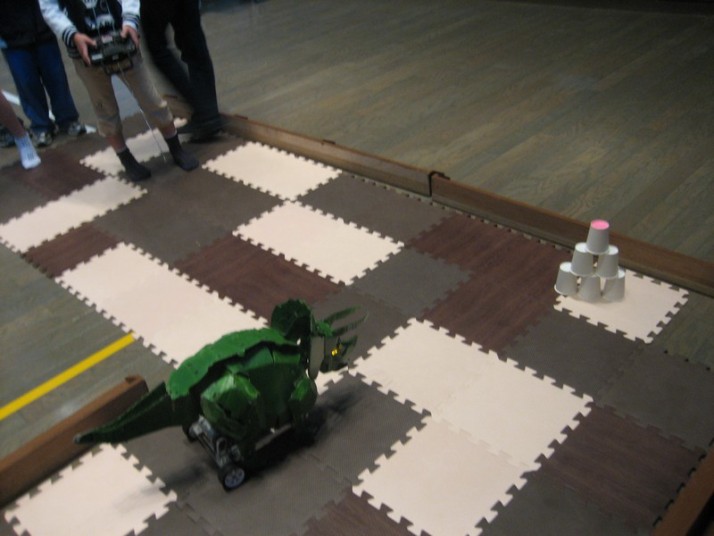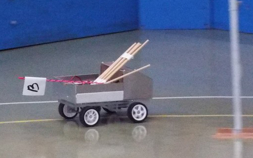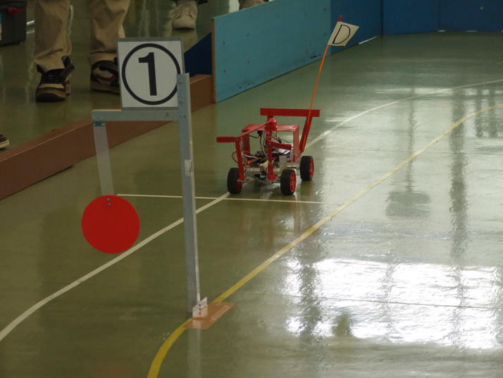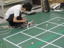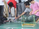 競技内容は,陸上トラック型コースを周回しつつ複数の標的を槍で突くというものです.今回,28台(28班)のロボットが参加しました.