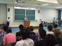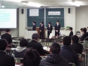 第11回全日本学生フォーミュラ大会参戦を控えたチーム“Sojo Project F”に対し、壮行会が行われました.壮行会には工学部長をはじめ大勢の先生方や事務の方々が参加され、学生達に激励の言葉を送られました.学生達も一人一人大会への意気込みを語りながら、自分達の士気を高めていました.