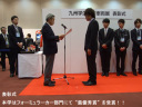 また,20日には九州学生製作車両展各車両に対する審査会が行われ,本学はフォーミュラカー部門にて“最優秀賞”を受賞しました.この賞は学生の自動車製作意欲と技術水準を高めるとともに,北部九州の自動車産業の振興を図ることを目的としています.審査では事前に提出した企画書を基に,日産九州・トヨタ九州・ダイハツ九州の3メーカーの方々が当日学生達に対して口頭試問を行い,技術力・独創性およびデザイン性などが評価されます.