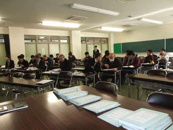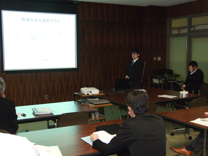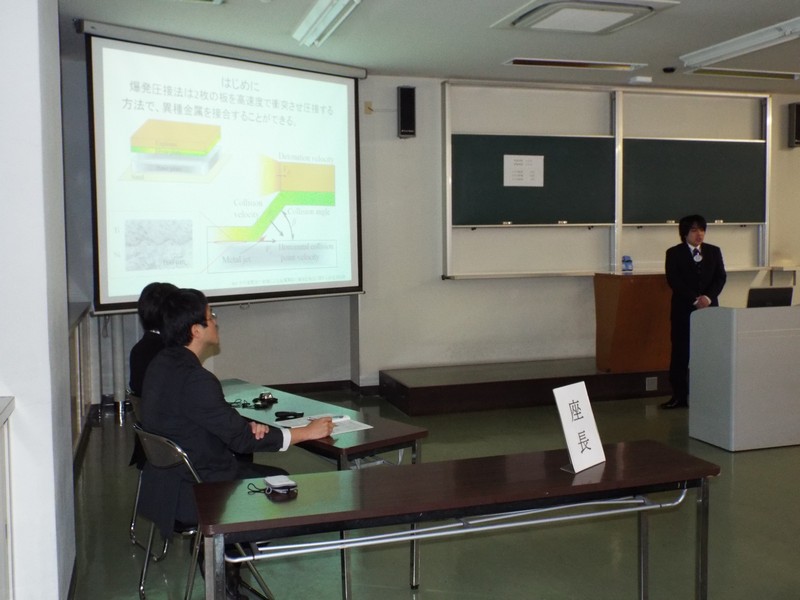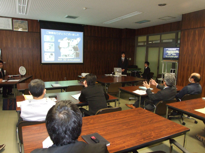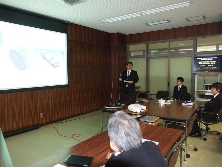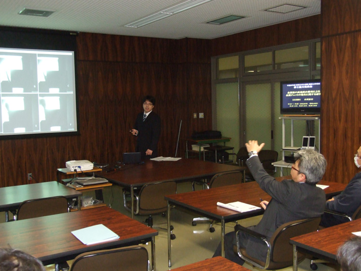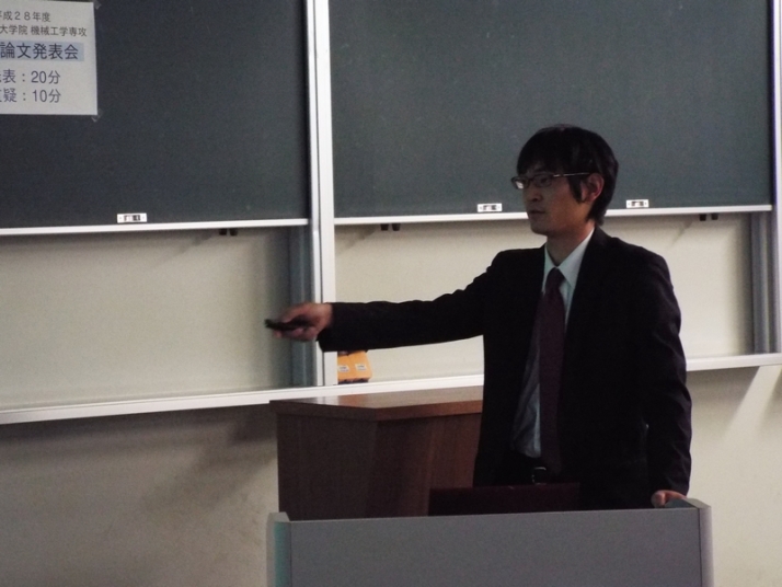 大学院修士課程の最終試験とも言うべき修士論文発表会が9:00より機械工学科棟会議室で開催されました.発表会では各自20分の発表と10分の質疑応答を行います.修士課程2年間,研究を積み重ねてきた集大成として修士論文を纏めた学生達は各自十分に準備の上,発表および口頭試問を迎えました.修士2年生5名は2年間の研究成果を堂々と発表し,教員からの質問に自らの考えや意見をもって対応していました。
