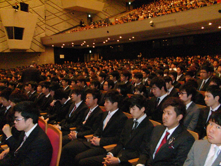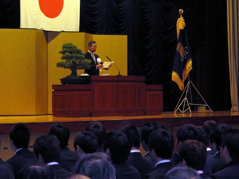 市民会館崇城大学ホール(熊本市民会館)にて平成26年度入学式が挙行され、機械工学科は109名の新入生を迎えました.将来の目標を持って入学した人、将来自分は何がしたいのか?はっきりしないまま入学してきた人、様々いることでしょう.既に目標を持っている人はその夢の実現に、これから目標を考えよう!探そう!という人もあせらず大学4年間かけてじっくりと自身の将来について考えてもらいたいと思います.そのきっかけになるような課外活動(ロボット、フォーミュラ、爆発成形)や最先端の研究に取り組んでいる先生方など、機械工学科には皆さんの将来に対する悩みや不安を払拭するような刺激に溢れる出会いが数多くあるはずです.早く自分の足でその第1歩を踏み出し、充実した大学生活を過ごしてほしいと思っています.