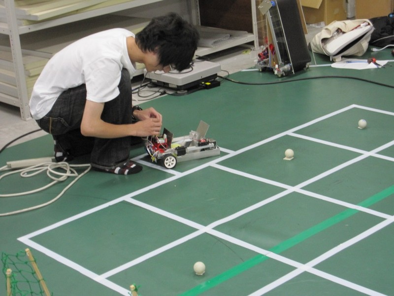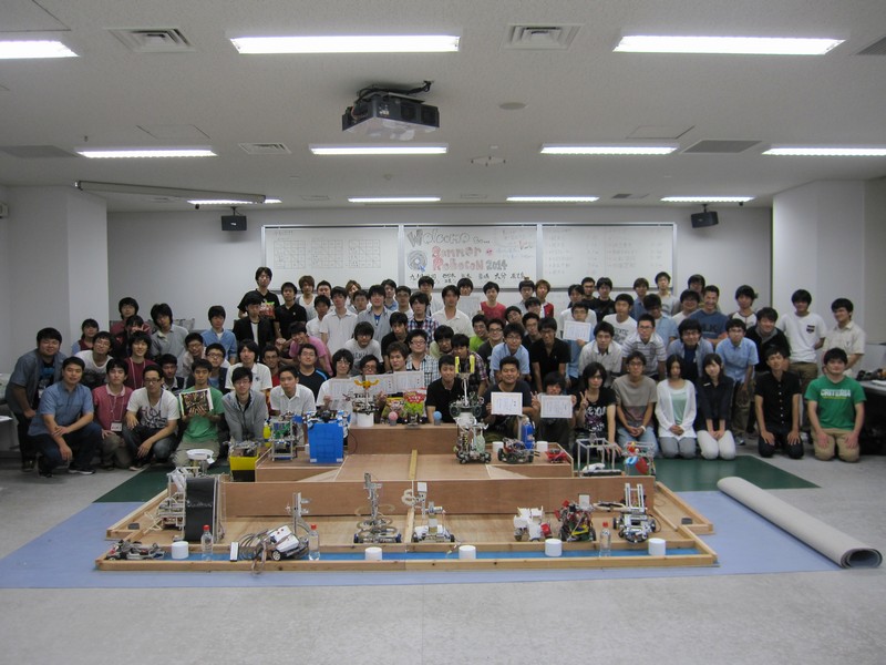 課外活動「ロボット研究会」は,8月30日(土)に九州大学伊都キャンパスで開催された「2014九州夏ロボコン」に参加しました.九州夏ロボコンは,九州圏の大学のロボット研究会の技術交流を目的として,九州大学ロボット研究会主催で毎年夏頃に開催されています.本学のロボット研究会では,1年生の技術力と士気を向上するため,1年生主体で競技に挑んでいます.今大会には,大分大学・鹿児島大学・九州大学・熊本大学・崇城大学・西日本工業大学・福岡工業大学(五十音順)のロボット研究会が参加しました.全競技終了後,懇親会も行われ,他大学のロボット研究会と交流を深めました.