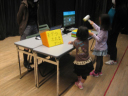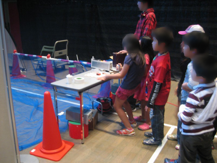 熊本市子ども文化会館が主催する「科学ランド」は,子どもたちの科学に対する興味・関心を向上させることを目的として開催されています.そのため,科学の不思議をテーマとした遊びや創作の体験コーナーが用意されており,ロボット研究会は「いろいろなロボットで遊ぼう!」と題する体験コーナーを担当させていただきました.本コーナーでは,多くの子どもたちに,部員の手作りロボットとゲームを楽しんでもらいました.ロボット研究会は,大会出場を目指すのみならず,ものづくり教育や地域にも貢献していきたいと思っています.