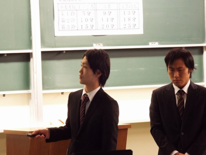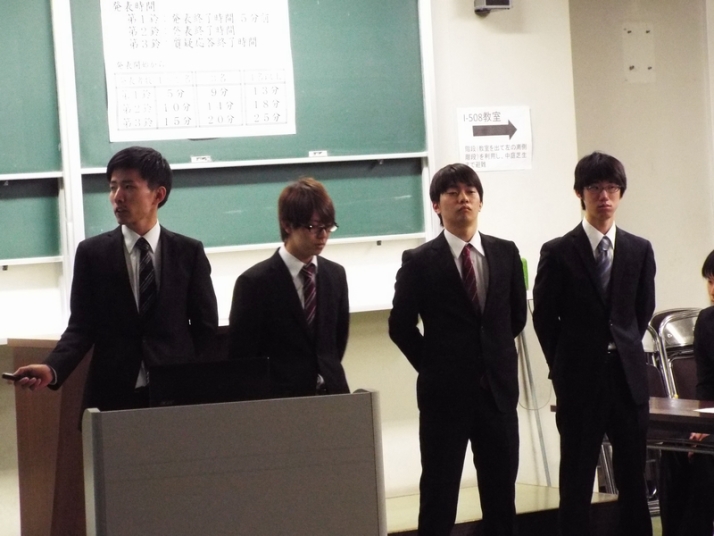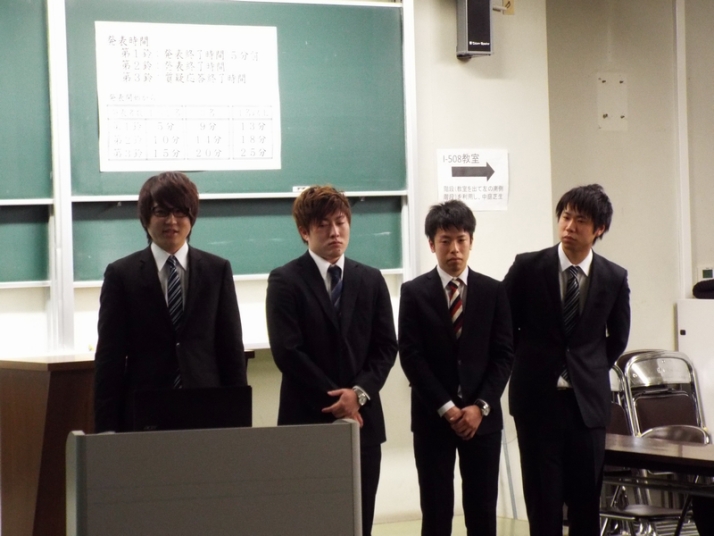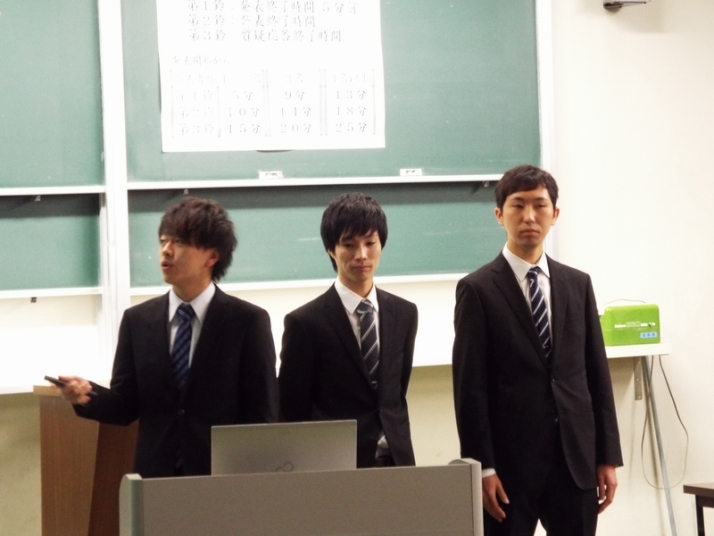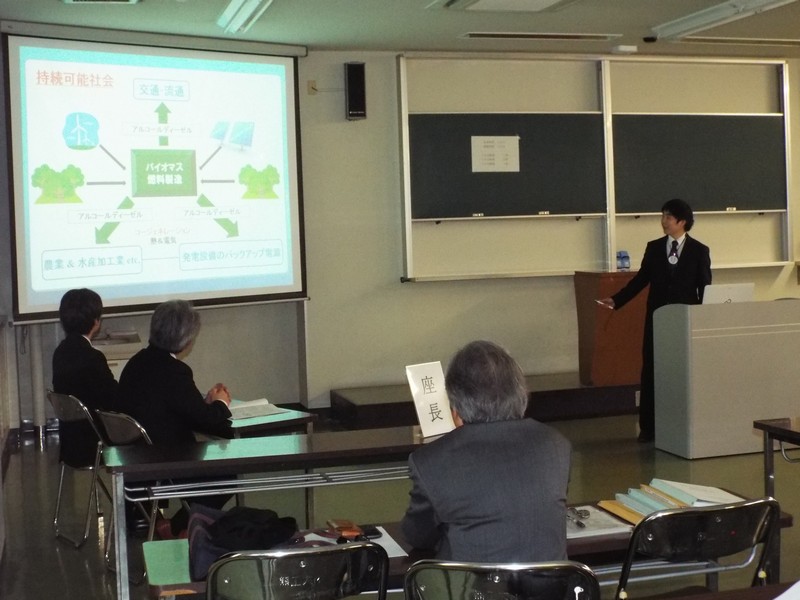平成27年度崇城大学工学部機械工学科の卒業研究発表会が平成28年2月12日(金)に機械工学科棟I508教室で開催されました.卒業研究に着手した4年生は,配属先の研究室において,機械工学に関する研究テーマに取り組み,得られた成果を卒業論文としてまとめ,本発表会において,その内容を口頭発表します.なお,発表会では,口頭発表のみならず,質疑応答もあります.どの学生も口頭発表の制限時間を守り,発表練習をしっかり行っていることがわかりました.また,質疑応答では,真摯に回答している姿が印象的でした.