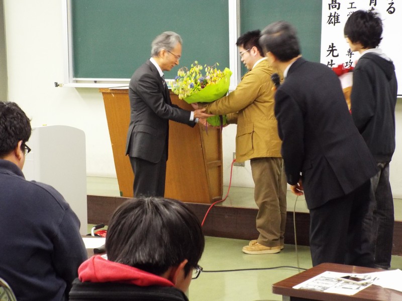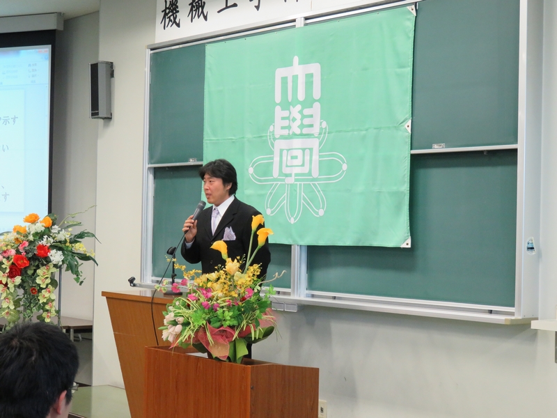 東町雄教授の退任記念講演会(最終講義)が平成27年2月18日(水)に機械工学科棟I508教室で開催されました.東町雄教授は,(株)日立製作所機械研究所に14年間,(財)くまもとテクノ産業財団・電子応用機械技術研究所に22年間,本学大学院工学研究科機械工学専攻・本学工学部機械工学科に8年間の計44年間にわたり,研究・開発・教育にご尽力なさいました.研究においては,CAE(コンピュータ援用工学)をテーマに,ソフト開発・技術指導・著書出版・機械学会フェロー認定・論文賞受賞など,多大な功績をあげられました.また,教育においては,講義および学生指導にご尽力され,本専攻・学科の教育にご貢献いただきました.本講演会では,本学教職員ならびに在学生のみならず,外部の方もご出席いただきました.東町雄教授の貴重な経験談とご助言に,聴講された方は熱心に耳を傾けていました.