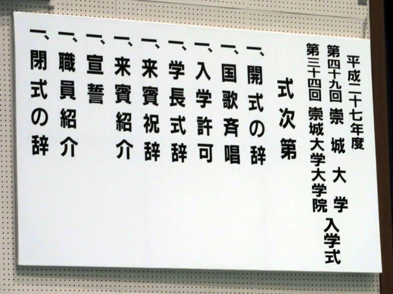 平成27年度「第49回崇城大学入学式」ならびに「第34回崇城大学大学院入学式」が平成27年4月5日(日)に崇城大学体育会館で挙行されました.機械工学科新入生89名ならびに機械工学専攻(大学院)新入生4名は,正式に入学を認められ,本学の在学生になりました.なお,入学式終了後に,保護者面談会および新入生オリエンテーションが開催されました.目標を持って充実した大学生活を送ってほしいと思います.