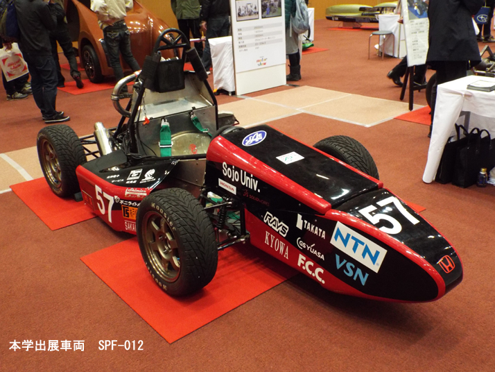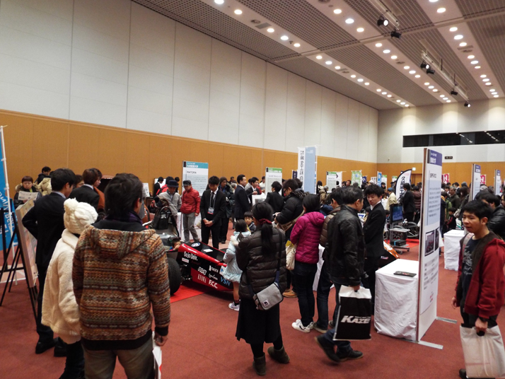 本年12月18日〜21日の4日間,福岡モーターショー2015が開催されました.本学は北部九州自動車未来展の九州学生製作車両展フォーミュラ部門に2014年度大会フォーミュラ車両を出展しました.連日大盛況の中,途切れることなく訪れる来場者に対し,本学学生は自ら製作した車両の特徴やコンセプトを存分にアピールすることが出来ました.